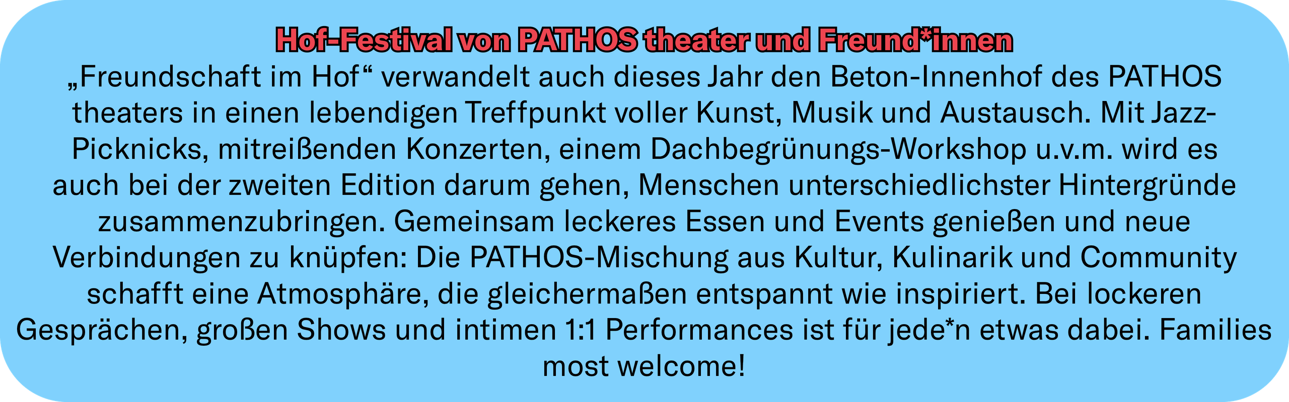AußenraumDiskursFestivalFlohmarktImmersivInstallationKonzertLiteraturMusiktheaterPartyPATHOS theaterPerformanceQueerTheaterWorkshop